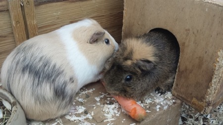 Ich habe fünf Meerschweinchen, die ebenfalls einer meiner Hobbies sind. Am Anfang waren es nur drei Stück, doch sie bekamen Nachwuchs.